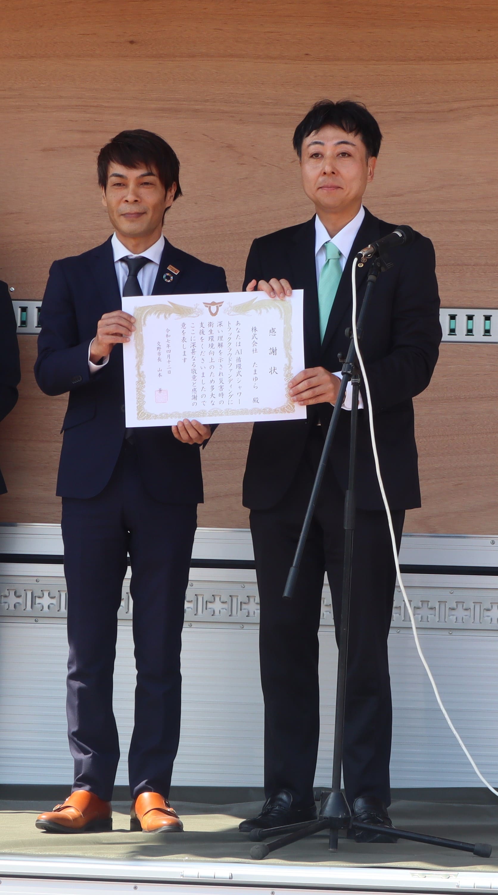 AI循環式シャワートラック クラウドファンディング感謝状贈呈式