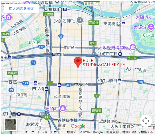 場所:PULP STUDIO&GALLERY (〒541-0058 大阪府大阪市中央区南久宝寺2丁目2-5 2F)
