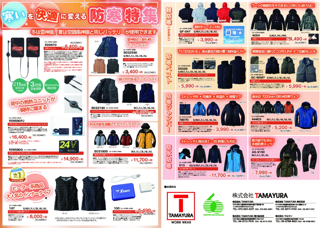 チラシに掲載のあったかベストは、冬は雷神服、夏は空調風神服と同じバッテリーが使用できるので、1年間を通してバッテリーをフル活用することができます。(一部使用できない種類もありますので、対応商品は事前にお確かめください)また、スイッチONで瞬時に暖まる背中に配置された発熱ユニットが極寒の屋外や冷え込む倉庫内でも、瞬時にポカポカ(*^^*)