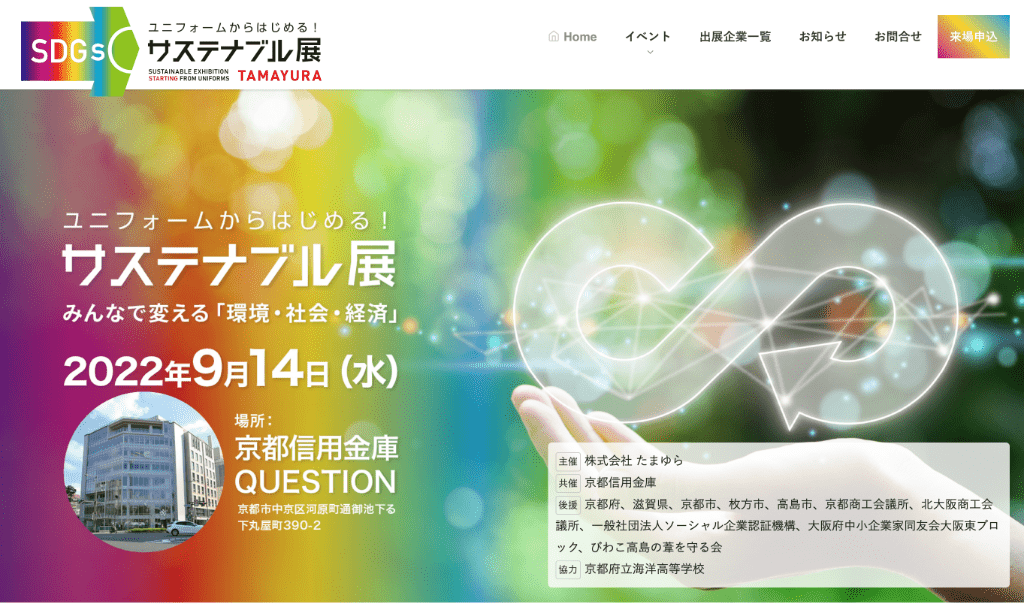 「もっと気楽に始めよう、1人の100歩より100人の1歩」をキャッチコピーに、2022年9月に京都で開催した「SDGsユニフォームからはじめる!サステナブル展」。