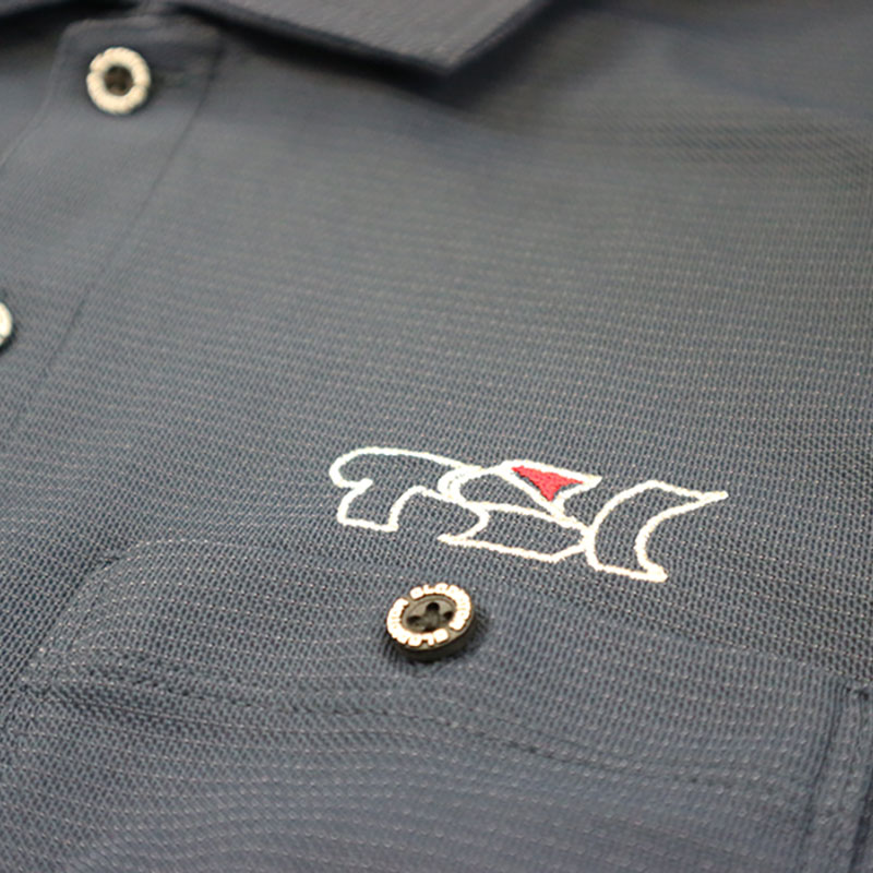 ポロシャツ:刺繍(1段/標準2色)1左胸TSCロゴ(ロゴ銀枠+赤)